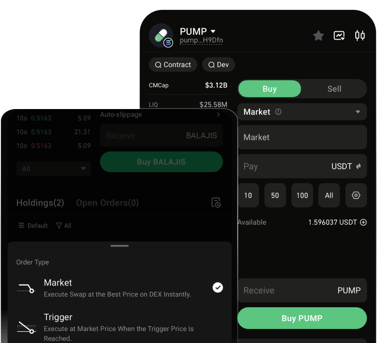 계좌에 자금이 있는지 확인하세요(입금 또는 이체를 통해).토큰 선택: 이름이나 계약 주소로 검색하거나, 마켓 탭(예: TSLAx, NVDAx)에서 선택하세요.주문하기: 매수/매도 선택 → 마켓 주문 또는 트리거 주문 선택 → 금액 입력 및 확인.포지션 모니터링: 수량, 평균 가격, 손익을 확인하고, 필요에 따라 손익 실현/손절매를 설정하세요.기록 확인: 토큰 세부 정보 페이지에서 미결 주문 및 거래 내역을 검토하세요.거래 가이드