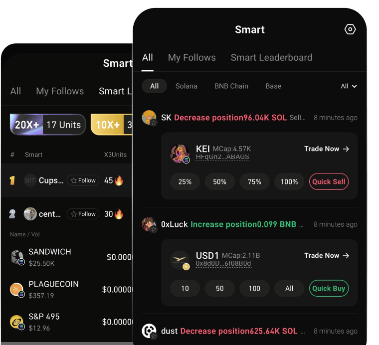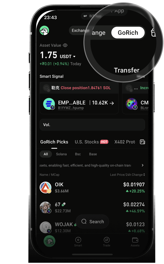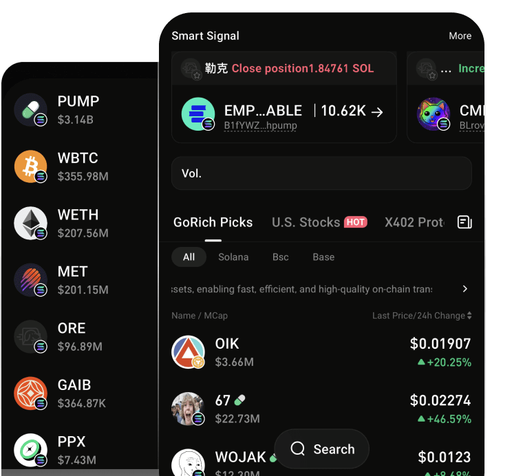 GoRich Smart Money Signals는 암호화폐 업계 전반의 KOL(주요 오피니언 리더)에 대한 가장 포괄적인 목록을 제공합니다. 실시간으로 KOL의 매수 및 매도 활동을 모니터링하여 정확한 거래 신호를 제공하여 시장 기회를 포착할 수 있도록 지원합니다. 원클릭 주문 기능을 통해 KOL의 투자 움직임을 손쉽게 파악하고 전략을 신속하게 실행할 수 있습니다. 핵심 장점:포괄적인 KOL 목록: NFT 플레이어 및 암호화폐 투자자 등 세계적인 KOL을 포함하여 광범위한 정보를 제공합니다.실시간 모니터링: KOL의 거래 행동을 24시간 추적하여 모든 기회를 포착합니다.즉각적인 신호: 즉각적인 매수/매도 알림을 제공하여 더욱 빠른 의사 결정을 지원합니다.원클릭 거래: 프로세스를 간소화하여 KOL 기반 거래를 원활하게 실행하여 투자 효율성을 높입니다.